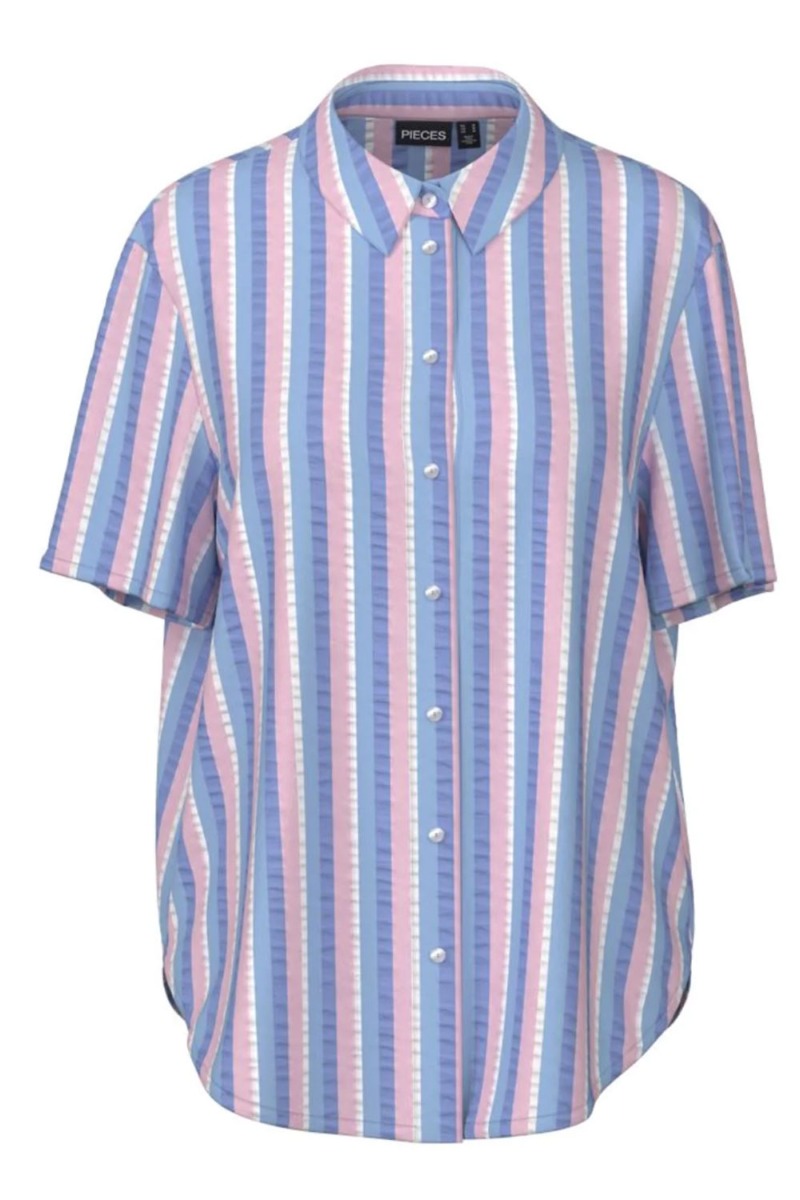 Pieces - Skjorte - PC Aitlyn SS Shirt - Hydrangea Multi stripes