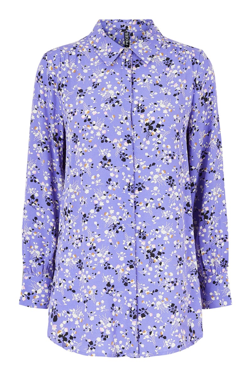 Sød lilla skjorte med et fint lille blomsterprint i hvid, brun og rosa nuancer. Skjorten har lidt ekstra længde med lange ærmer der knappes ved håndleddet. Foran lukkes skjorten og har et klassik fit der altid er nem at rive frem i skabet til et par bukser.