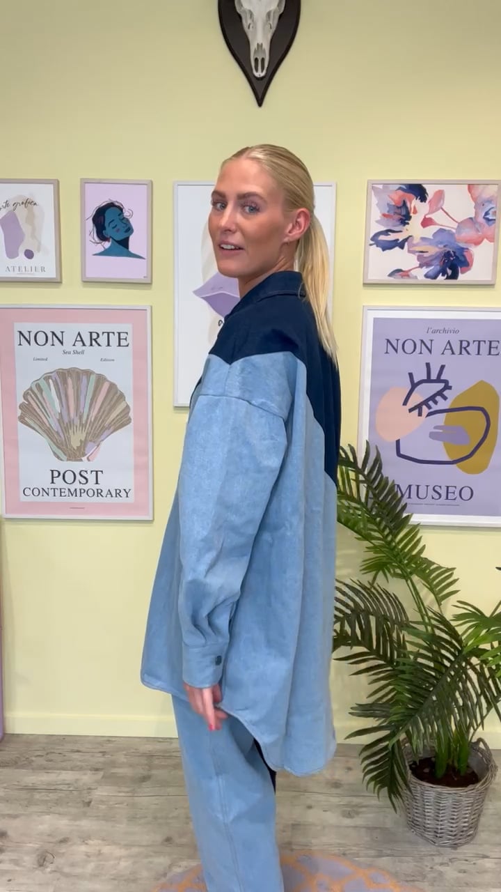 Sejeste colorblocked skjorte i denim fra Pieces. Skjorten har en cool oversized pasform som er god rummelig. De seje colorblocked detaljer er i et stråt look som gør det mega anderledes og unikt. Den har trykknapper og er derfor mega nem at arbejde med. Den kan styles både lukket og åben som en basistop under. For et fuldendt look kan man style skjorten med de matchende bukser.