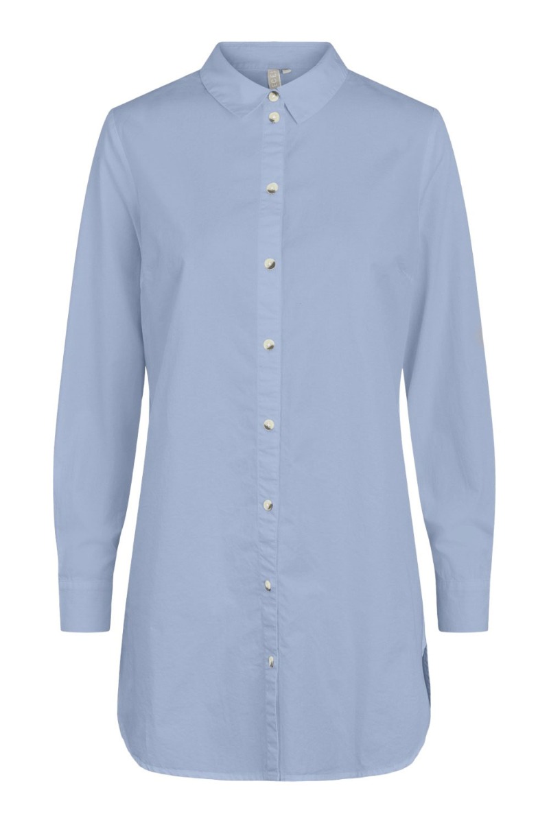 En fin basis skjorte fra Pieces er kommet i en smuk lyseblå farve. En lyseblå farvet skjorte kan man altid bruge og denne er en lang model som kan bruges både åben og lukket til et par jeans. Den har synlige knaplukning foran og findes også i hvid.