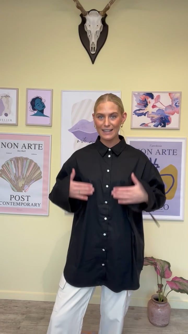 Sort skjorte fra Pieces med små fine feminine detaljer. Skjorten er oversize og længere bagtil end foran. Den lukkes med de sødeste blomsterknapper hele vejen ned og afsluttes med en bindedetalje ved håndleddet. Style den over leggings eller jeans.
