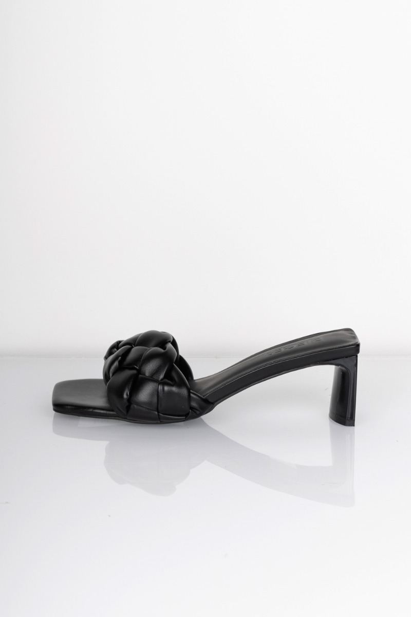 Simpel sort stilet fra Pieces man bare SKAL eje! Stiletten er en slippers med en lille hæl og fletdetalje. Hølen er tynd men bred hvilket giver dig nogle centimeter ekstra i højden som vi jo godt kan lide. Den er perfekt til dine fødder, så du kan danse hele dagen (og natten) lang!