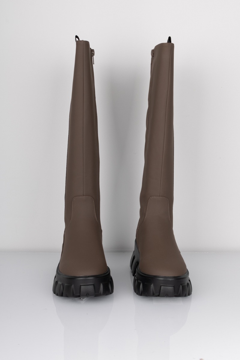 Knæhøje støvler er og bliver altså bare et hit og det gælder selvfølgelig også i år. Disse støvler er fra Pieces og er i brun med et mat look, som ser drøngodt ud til alt fra kjoler til jeans. Der er et sort bånd, som går vandret på ydersiden af støvlerne. Sålen er desuden også sort hvilket matcher såååå godt! Støvlerne lynes op på indersiden, og er nemme at komme både i og af. Støvlerne har plateau med en bred chunky sål, som desuden er skridsikret.