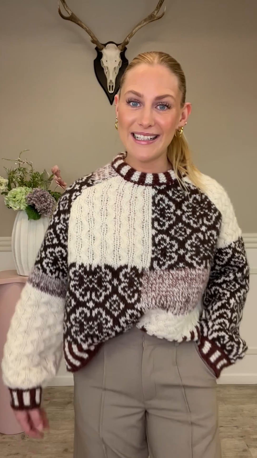 Så er strikken tilbage men denne gang i en ny smuk farve kombination. Den er fra Pieces som har lavet den i denne blød kvalitet og med den perfekte løse pasform. Den behøver ikke med af de andre styles du har på, da den i sig selv skaber looket. Perfekt til garderoben.