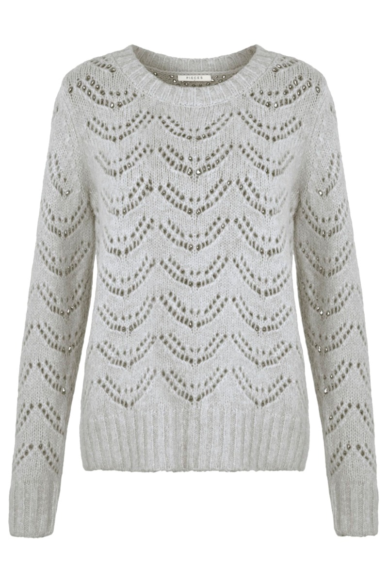 Pieces - Strik - PC Bibi LS Knit - Light Grey Melange