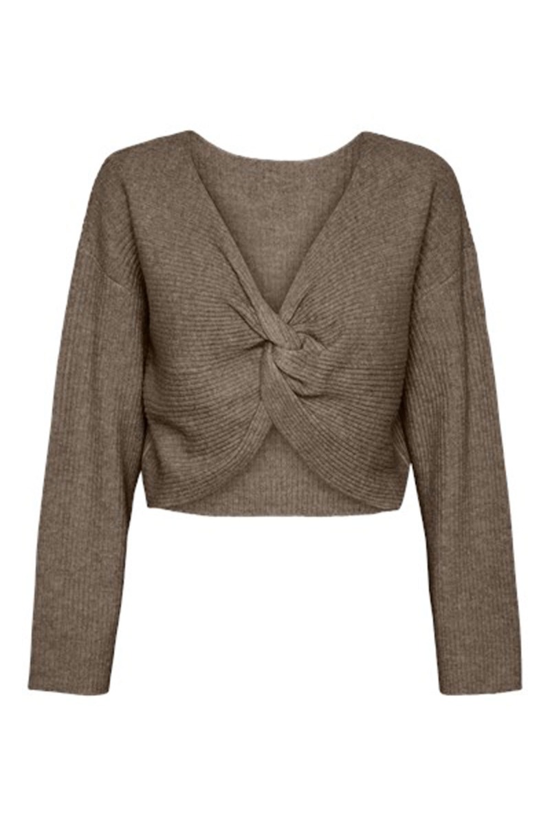 Pieces - Strik - PC Juna LS Short Drape Knit - Fossil