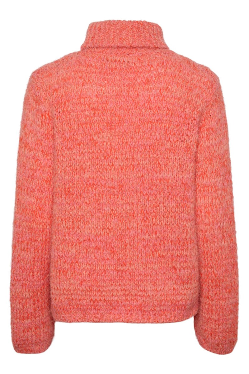 Pieces - Strik - PC Nona LS Turtle Neck Knit - Tangerine Tango/Multi Melange
