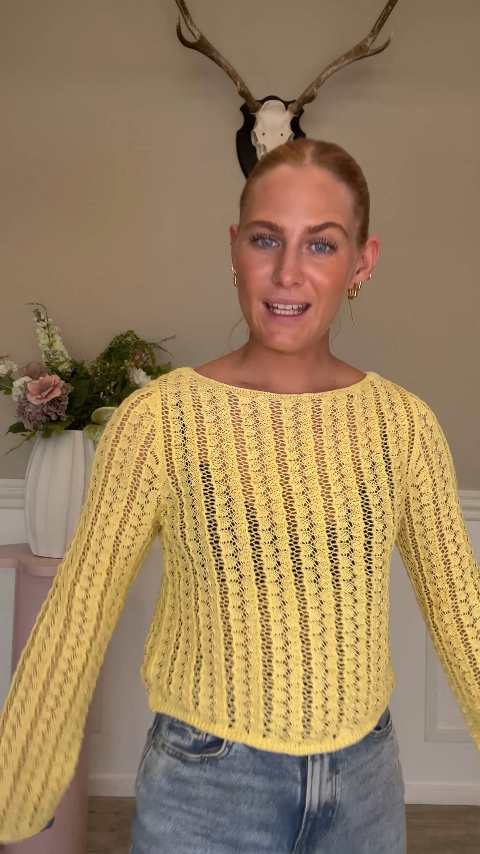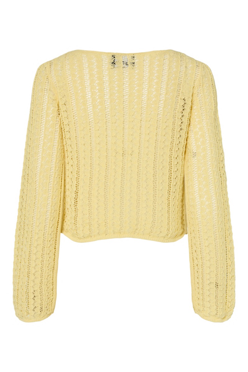 Strik fra Pieces. Denne strik har en bådhalset udskæring og en løs pasform. Strikken har den fineste, friske gule forårsfarve! Brug den som en pullover til de kolde sommeraftner eller style den med din favorit underdel.