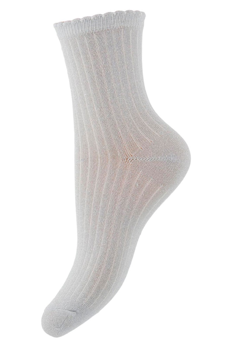 Fine glimmerstrømper fra Pieces i ribbet look med en sød lille bølgekant i enden. De er super søde at style til dine hverdagslooks og findes i flere skønne farver.