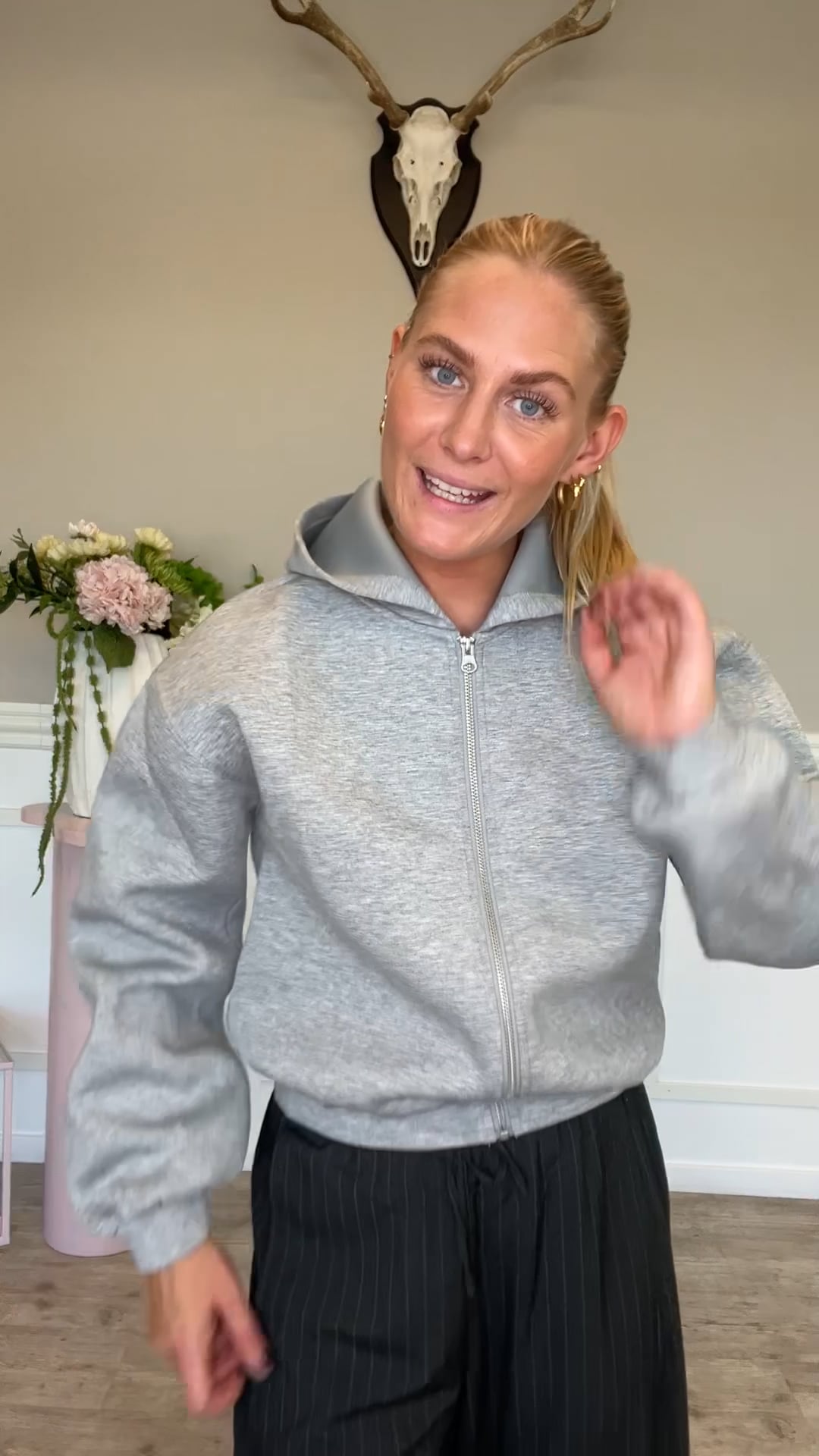 En nem hættetrøje fra Pieces er kommet i denne grå farve med helt klassisk hætte og lynlås foran. Den er rummelig og derfor er nem at bruge over en bluse. Derudover er den god til og fra træningscentret samt den findses også i sort.