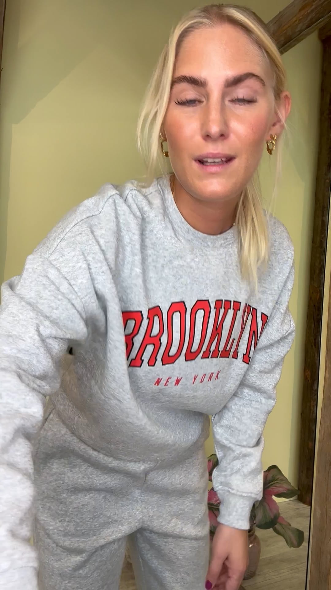 En sej sweatshirt med rød tekst over brystet fra Pieces. Sweaten er dejlig blød i kvalitet, den er nemlig plysset indvendigt. Derudover er den løs i pasformen og kort i modellen så den passer sammen med de matchende bukser.