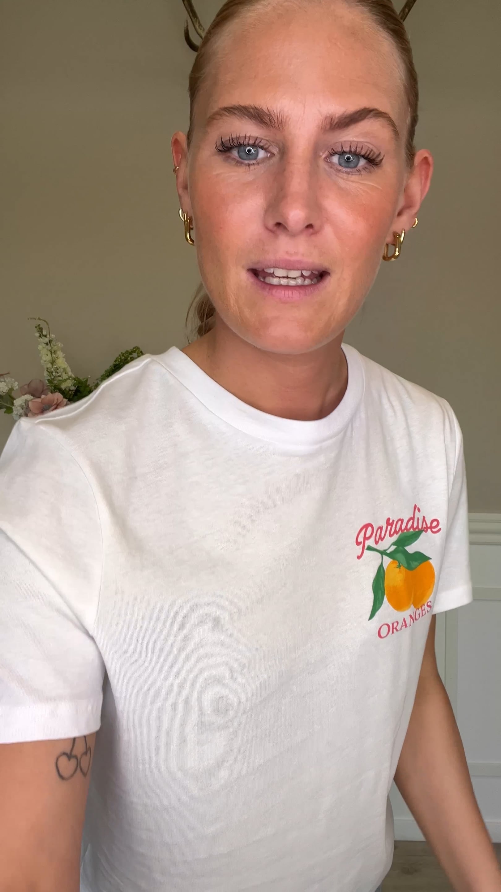 T-shirt med sommerligt print fra Pieces. Denne t-shirt har en hvid baggrundsfarve, med et lille print på brystet samt stort print på ryggen. Det er en super fed t-shirt, med et cool tryk som giver et pift. Style den evt. til et par shorts, denim nederdel eller jeans.