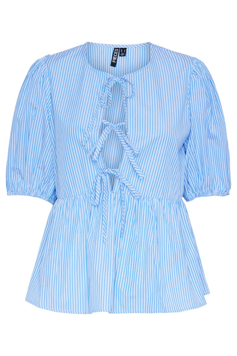 Pieces - Top - PC Holly 2/4 Tie Top - Cornflower Blue