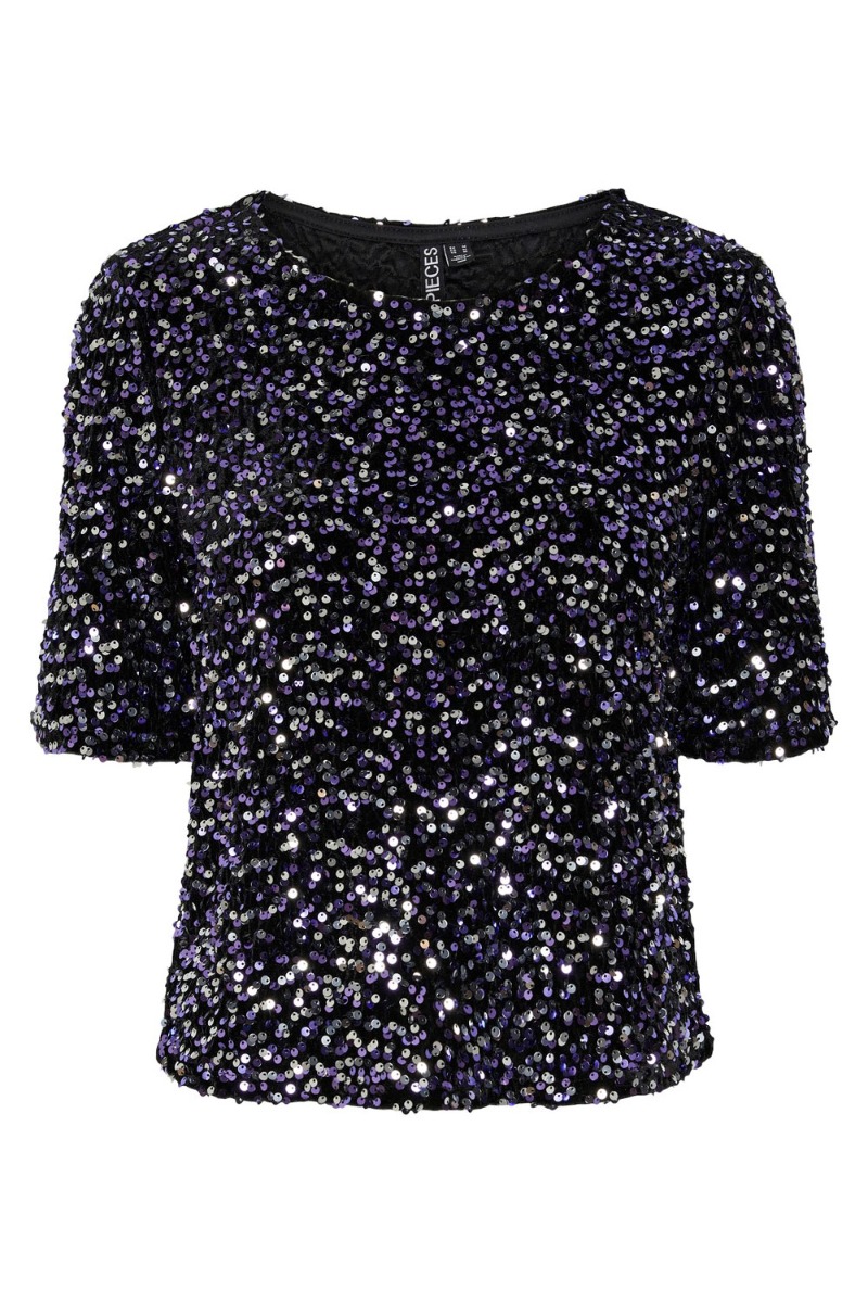 Pieces - Top - PC Kam SS Top - Black/Purple Silver