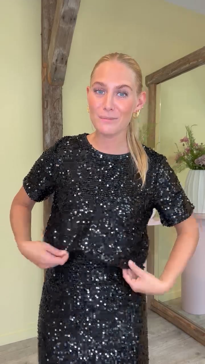En virkelig fin top fra Pieces, som er fyldt med palietter! Den er lavet i et klassisk t-shirt snit og foret med et blødt lag stof, så den ikke kradser. Toppen kan sagtens bruges til et par sorte bukser, men er også super fin til en nederdel!