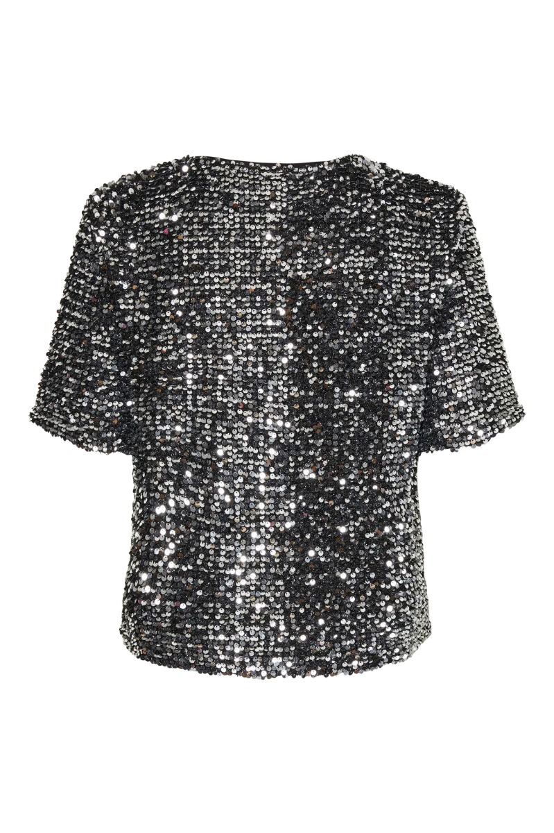Pieces - Top - Pc Serena Sequin Ss O-Neck Top - Black/Silver