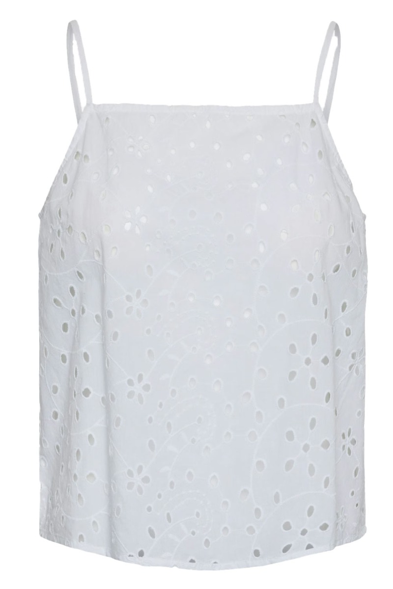 Pieces - Top - PC Wendy Broderie Anglaise Strap Top - Bright White