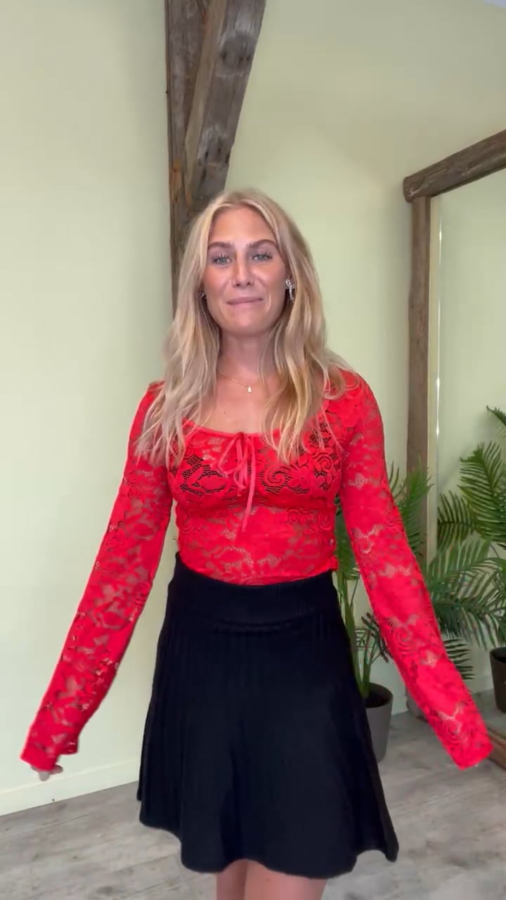 Pieces - Top - Pc Amalie Ls Lace Top - High Risk Red
