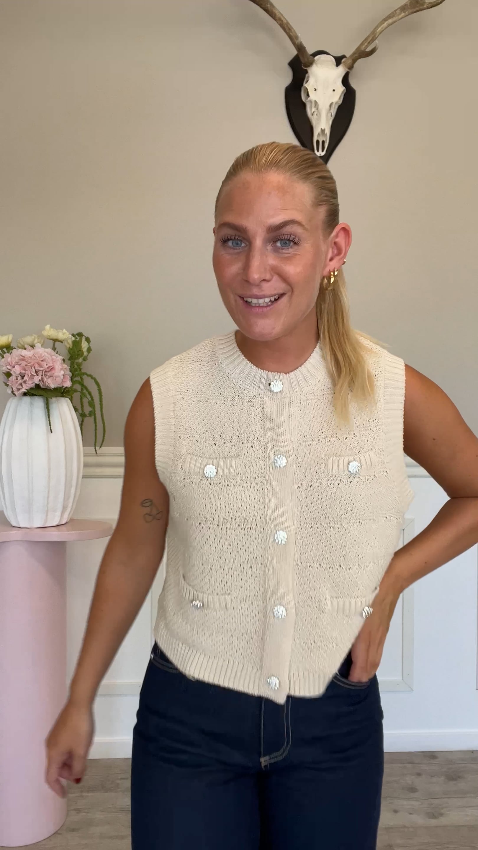Pieces - Vest - Jena O-Neck Knit Vest - Silver Lining