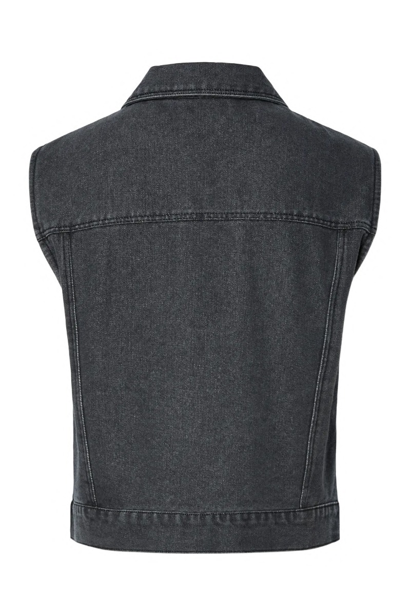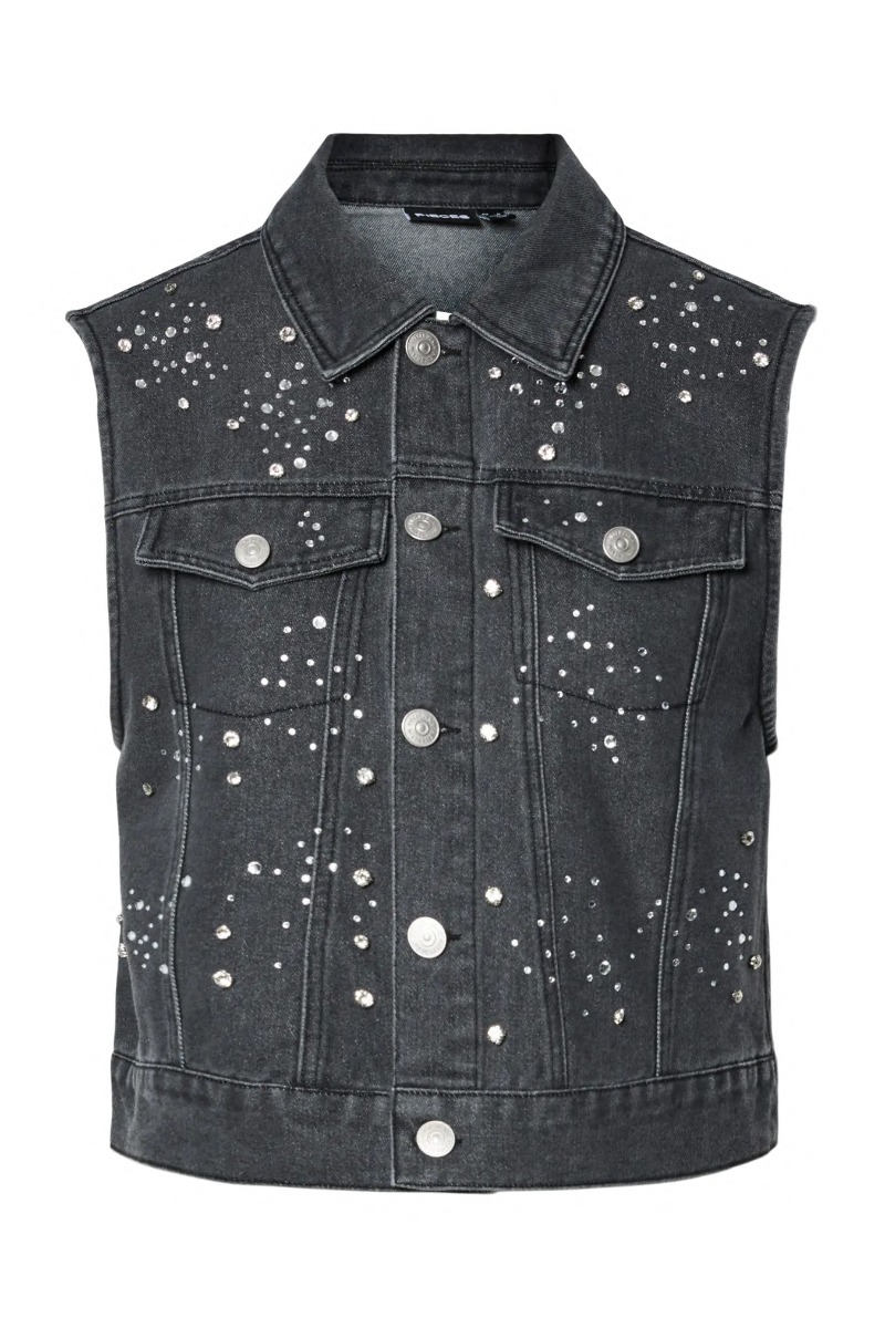 Pieces - Vest - Malika Rhinestone Denim Vest - Black washed (Levering start september)