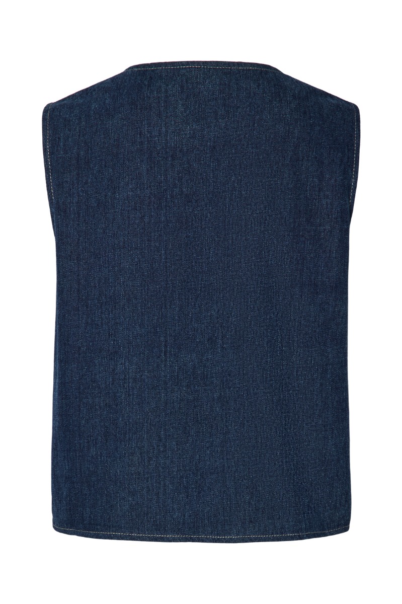 Pieces - Vest - PC Fabia Sl V-Neck Denim Vest AU24 - Dark Blue Denim