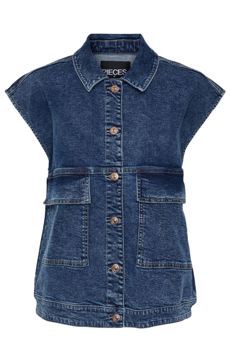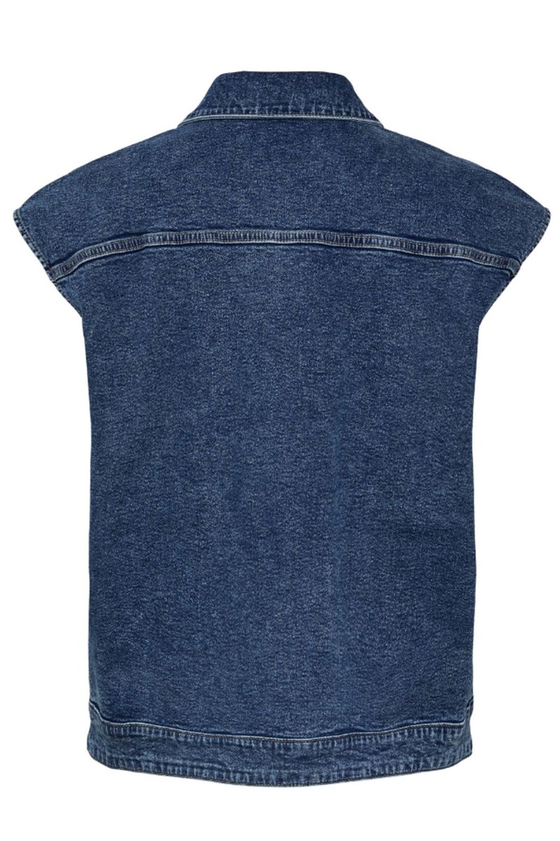 Pieces - Vest - PC Jessie SL Loose Denim Vest - Medium Blue Denim