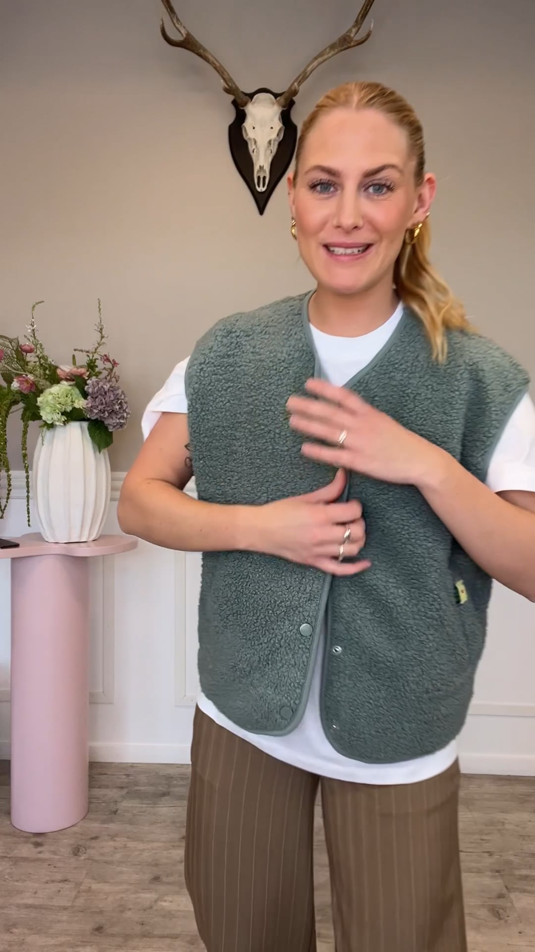 Flot vest fra Pieces i denne lækre grønne farve! Vesten er i det lækkreste teddy materiale og har knapper som lukning, derudover har den to lommer. Den kan let styles over en strik eller t-shirt, og med dine yndlings jeans til, så har du et mega cool look!