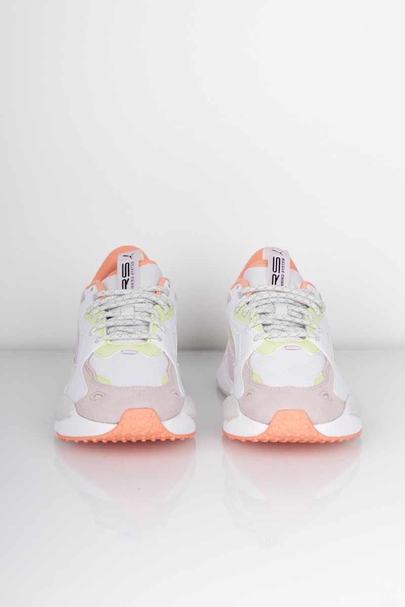 Den sejeste RS-Z sneakers fra Puma i hvid med de fineste coral, lilla og lime detaljer. Den er designet i flere forskellige materialer med læder, ruskind og tekstil der giver et unikt design. Pasformen på denne sneakers er helt i TOP!