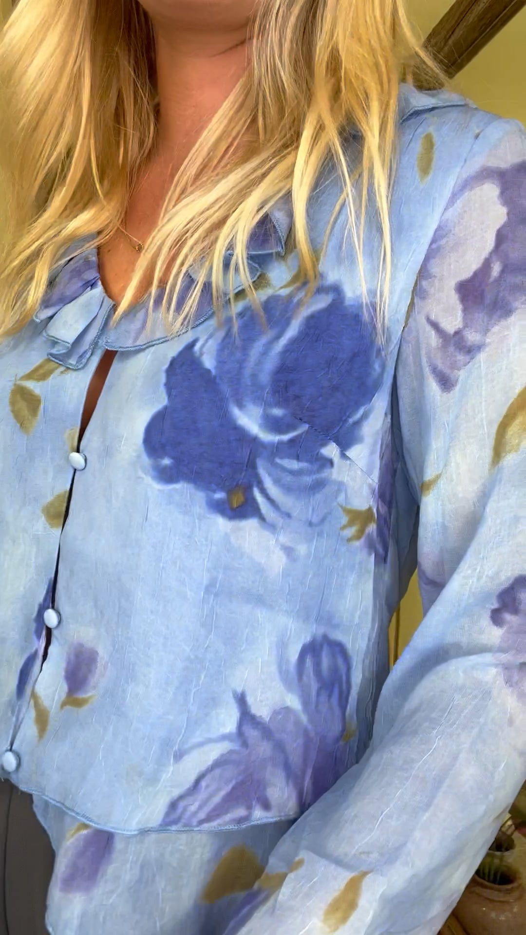 Smuk bluse med blomsterprint fra RÉSUMÉ. Blusen er lavet med det fineste blomsterprint, en løs flæse omkring hvert håndled og halskanten. Den har en blød v-udskæring, et fastsyet for og transparente ærmer, ammevenlig med knapper helevejen ned fortil. Style med en fin nederdel og et par flotte stilletter.
