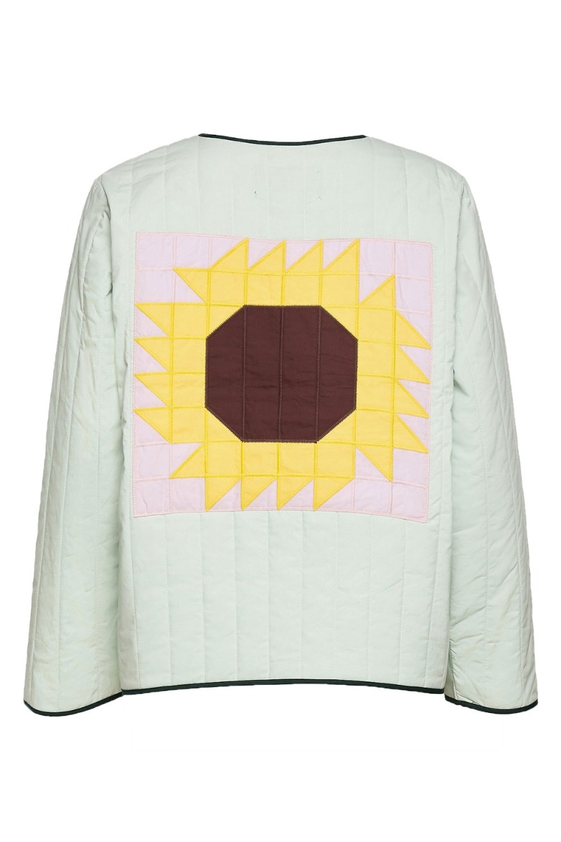 Dejlig bomuldsjakke fra Résumé der er perfekt til de kølige dage. Den har en super cool patchwork solsikke på ryggen. Jakken har lyserødt for indvendigt der giver en sød detalje ved opsmøg. Foran lukkes den med knapper og kan styles til alt.