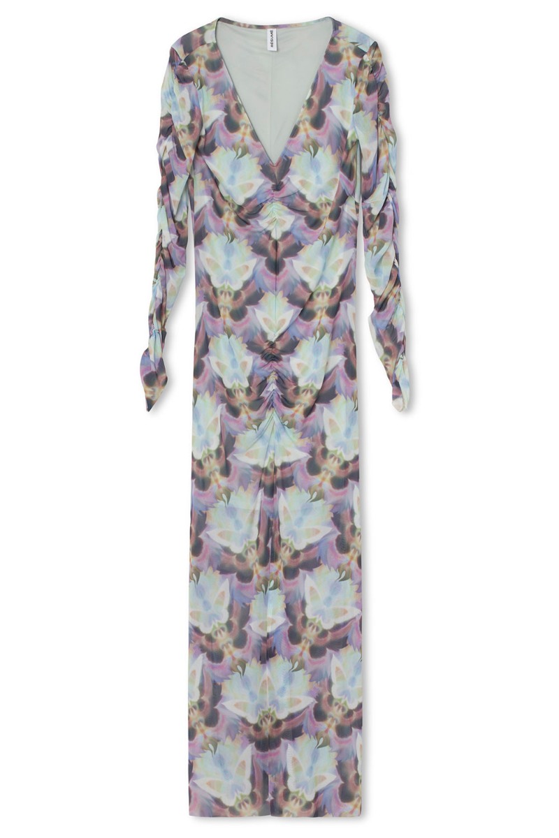 Hvis du ELSKER meshkvaliteten så er denne skønne sag ingen undtagelse fra Résumé som bare sidder spot-on på! Den er tætsiddende med rynkedetalje foran ved v-udskæring langs barmen og ved ærmerne. Printet er grafisk i lilla og grønne nuancer og skjuler derfor super godt. Den er foret så den ikke bliver gennemsigtig og er anvendelig til alle anledninger hvis du spørger mig. Udover det kan kjolen bruges både før, mens og efter en graviditet - PERFEKT!