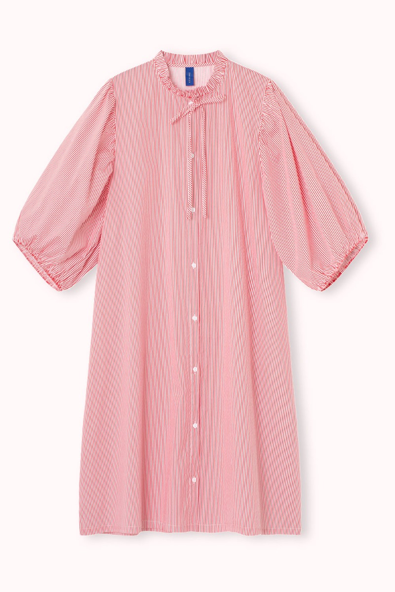Vi har virkelig glædet os til den nye kollektion fra Resumé som hedder 'charter' hvilket man virkelig kan genkende ved disse styles! Kjolen er hvid og rød stribet med pufærmer i en løs ballon-snit. Foran lukkes den med knapper og har en sød lille flæsekant og snøre i halsen. Style den med en sød sandal eller lang støvle.