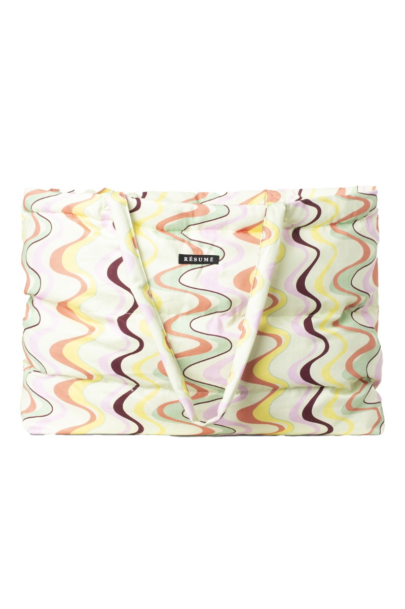 Tasken har en god stor størrelse med plads til ALT og virkelig ALT! Den er designet i det mega seje mønster i smukke farver der stråler af Résumés eget kendetegn - nemlig helt unikt! Tasken er genial til rejser, tur på stranden eller når du skal på weekendstur med veninderne.