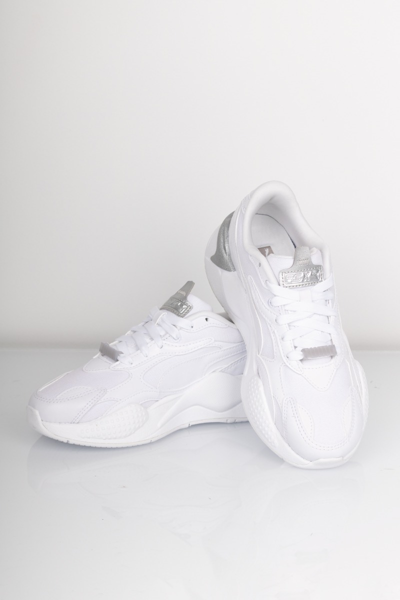 Helt klassisk look i hvid med sølv detaljer der gør den anvendelig til alt og året rundt. Denne sneaks er den klassiske RS-X model med ekstra små detaljer. Den er designet i forskelligt tekstil med en chunky bund og utrolig blød sål der gør det super behageligt at have den på dagen lang.