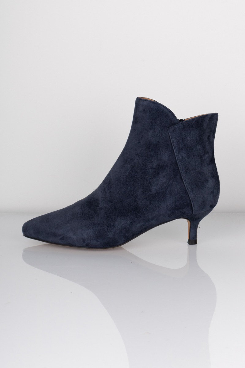 En ny saga støvle fra Shoe The Bear i navy farve. Navy er altid en god farve hvis man ikke er til den hele sorte farve. Skoene har en lynlås på indersiden og skaftet er lavt. Derudover er snuden spids og hælen er tynd med en lille højde på. En feminin sko til dit outfit - den findes også i flere farver.