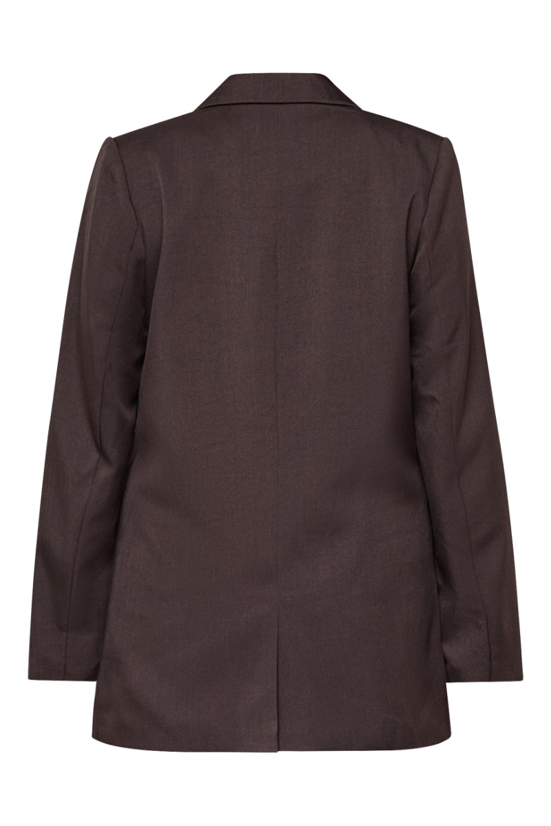 En skøn blazer i brun fra Sisters Point i en lækker strækbar kvalitet som er nem at bruge hele dagen. Blazeren er med ekstra længde og sidder helt perfekt. Den knappes foran med en enkelt knap og kan nemt styles til de matchende bukser.