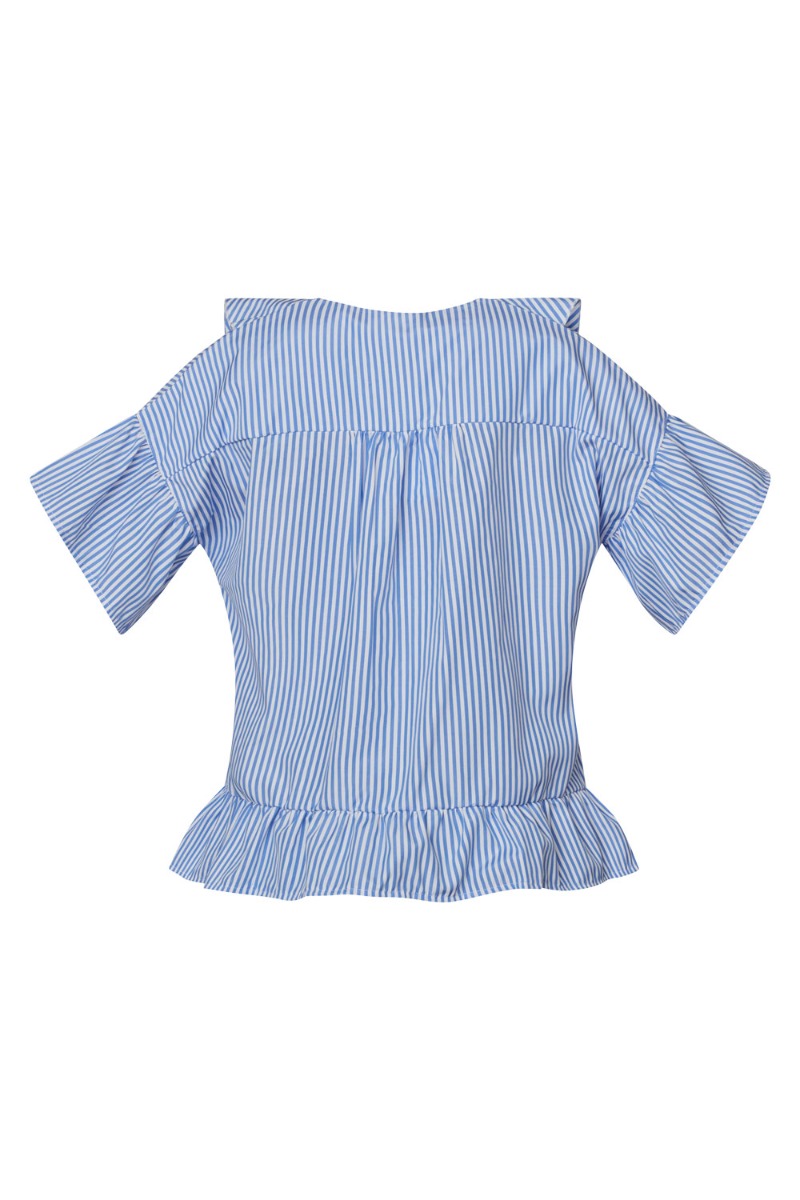 En fin top fra Sisters Point er kommet med striber i hvid og blå. Den er med flæser ved ærmer og foran samt i bunden. Den er løs i pasformen og kan nemt styles til et par jeans eller en nederdel. Den er er dejlig let i kvaliteten som også passer fint til det varmere vejr.