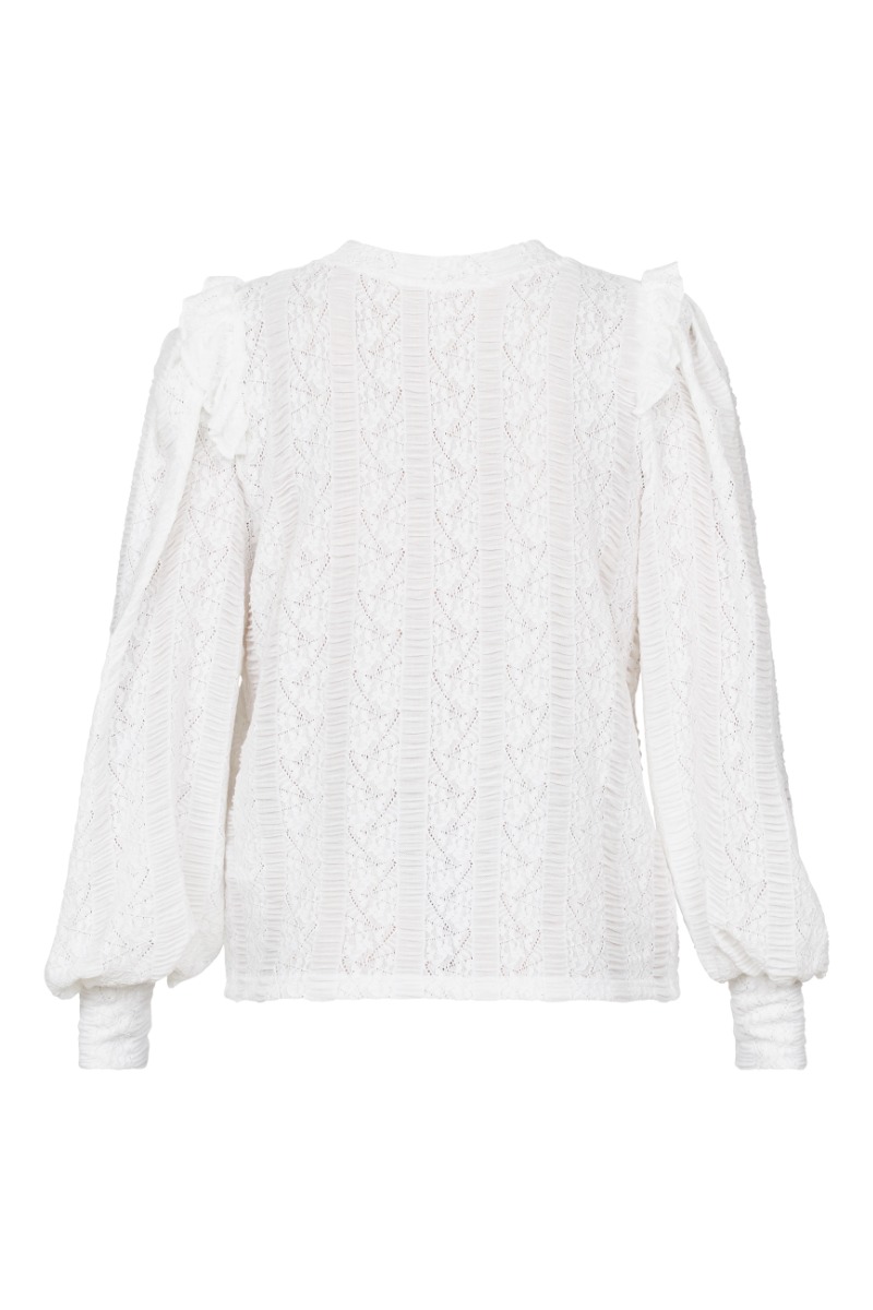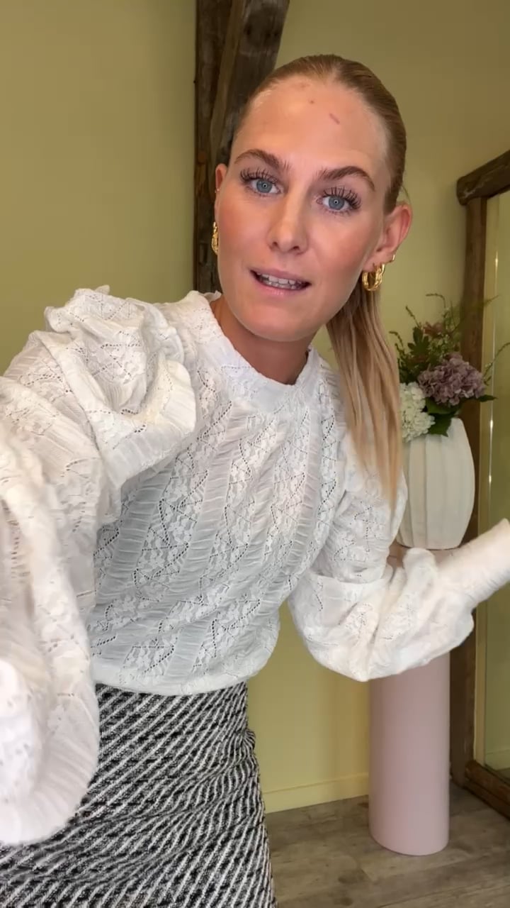 En super sød blondebluse fra Sisters Point. Denne bluse har et feminint design og søde detaljer. Den passer til stort set alt, og kan altså både styles til hverdag og særlige anledninger. Den er en smule gennemsigtig, så vi anbefaler en top under.