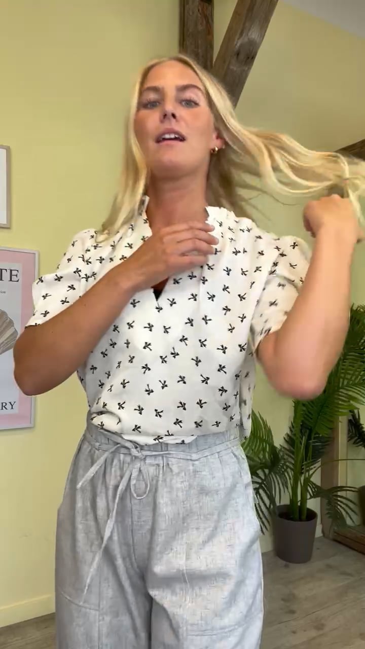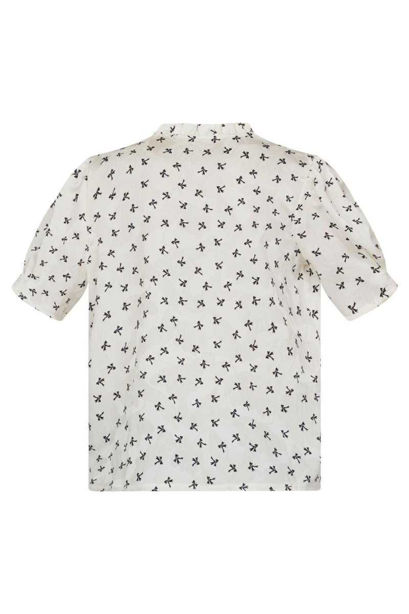 En sød bluse fra Sisters Point i hvid med små sorte sløjfer. Den er med korte ærmer og i en dejlig elt kvalitet. Derudover er den løs i pasformen og kan nemt styles til hverdag med et par jeans eller en nederdel.