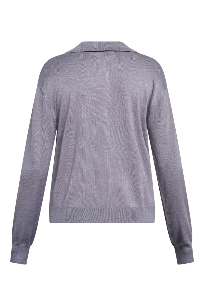En lækker strikket polo bluse fra Sisters Point i den fineste grå farve. Den her polo er simpelthen så behagelig, den har en løsere pasform og nogle vildt fine knapper. Den kan styles med en nederdel eller et par jeans, for et virkelig fint look.