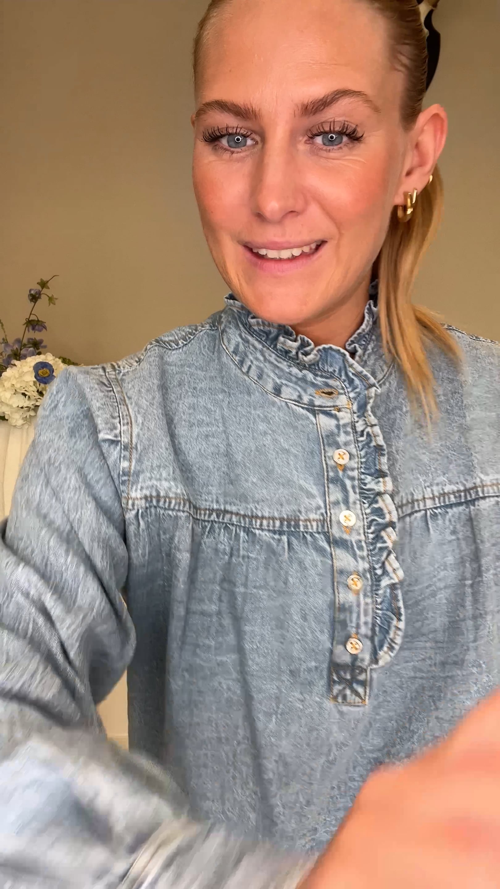 En fin og nem bluse fra Sisters Point er kommet i denne smukke denim kvalitet. Den er med flæse foran og ved halsen. Den er nem at bruge til hverdag med et par af dine favorit bukser. Derudover kan den også styles til en nederdel og med et par ballerinaer.