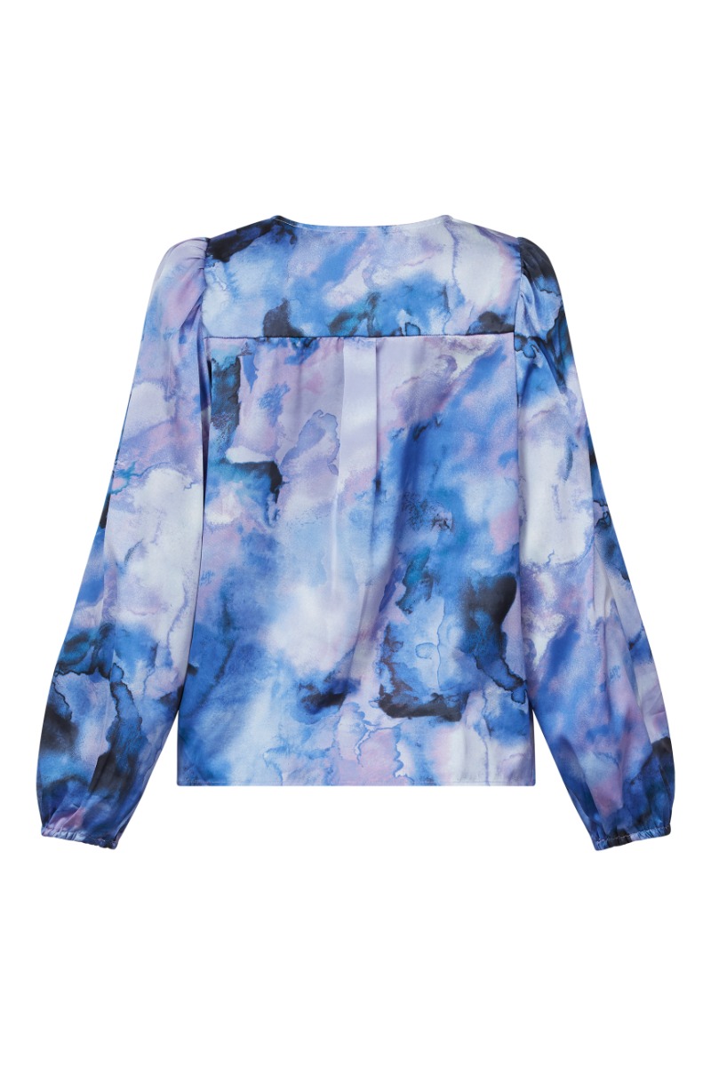 En virkelig smuk og elegant bluse fra Sisters Point i de flotteste blå og lilla nuancer! Denne bluse er dejlig rummelig, har v-udskæring og fyldige ærmer. Den er perfekt til din næste fest! Eller brug den med et par sorte jeans til hverdag.
