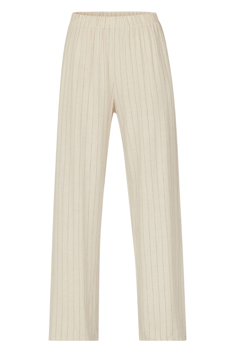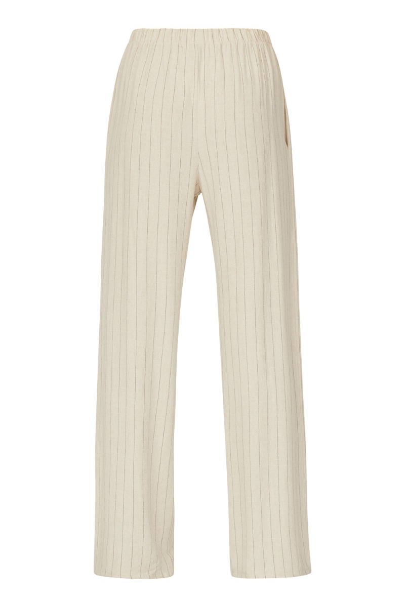 Et par skønne bukser fra Sisters Point i beige med sorte helt tynde striber. Den er med elastik i taljen og har vide i benene. Den er i en skøn og let kvalitet og kan nemt bruges til en simpel t-shirt eller en sommertop.