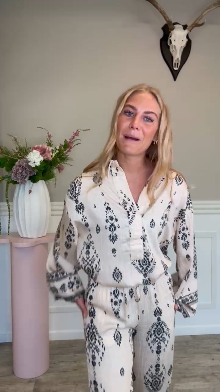 Et par bukser fra Sisters Point er landet! De lækreste løse bukser i en knækket hvid farve, med fine blå detaljer. De kan styles med deres matchende overdel Vylea-ls.