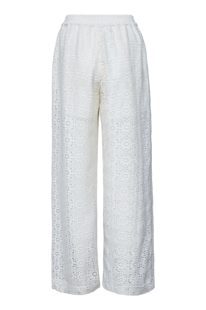 Et par cool bukser fra Sisters Point er kommet i hvid i en hæklet kvalitet. De er med elastik i taljen og er foret i denne øverste del så de ikke er gennemsigtige. Der findes en matchende overdel men kan nemt bruges sammen med en simple t-shirt.