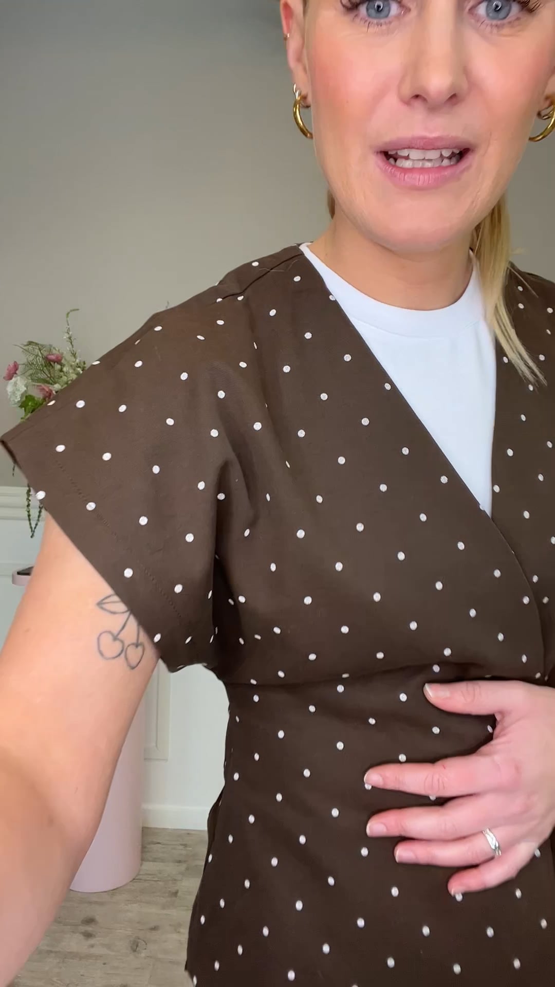 Afslappede bukser i en blød brun nuance med små, fine prikker, der giver et legende og feminint udtryk. Modellen har elastik og bindebånd i taljen, som sikrer en behagelig og fleksibel pasform, mens de let tilspidsede ben med elastisk afslutning forneden skaber en moderne silhuet. Det lette materiale gør bukserne ideelle til både hverdagsbrug og afslappede weekender, og de kan nemt styles med en enkel T-shirt, strik eller skjorte for et komfortabelt og stilfuldt look.