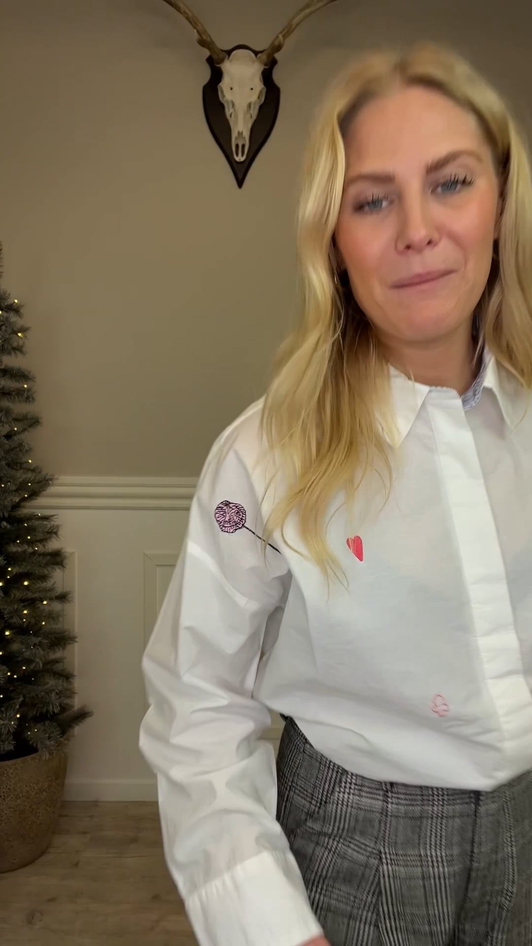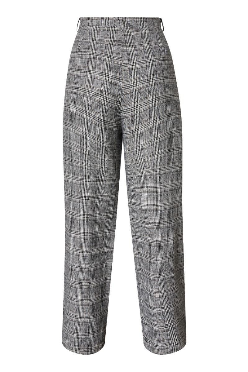 Disse bukser fra Sisters Point er et stilfuldt valg til både hverdag og kontor. De er designet i et klassisk sort-hvidt ternet mønster, der giver et tidløst og elegant udtryk. Bukserne har en høj talje med bæltestropper og læg foran, som giver en flot og struktureret silhuet. Benene er lige og let vide, hvilket skaber et moderne og afslappet look, samtidig med at pasformen fremstår sofistikeret. De er fremstillet i en blød og behagelig kvalitet, som gør dem komfortable at have på hele dagen.