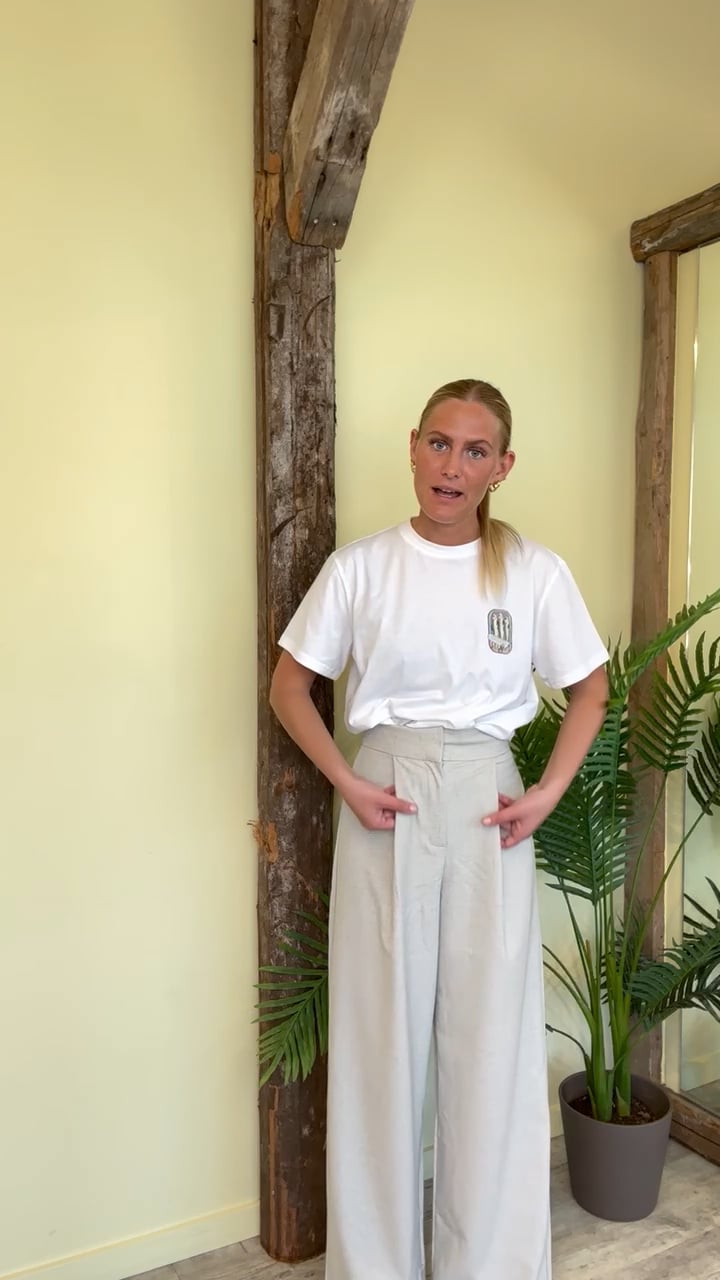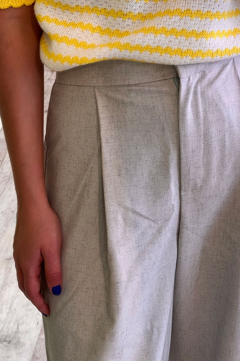 Et par seje bukser fra Sisters Point er kommet i en skøn grå/beige farve. Den er med elastik i taljen men kan bagpå så den sidder tæt og har den glatte overflade foran. Derudover er den vide i benene og er fin til en simpel t-shirt.