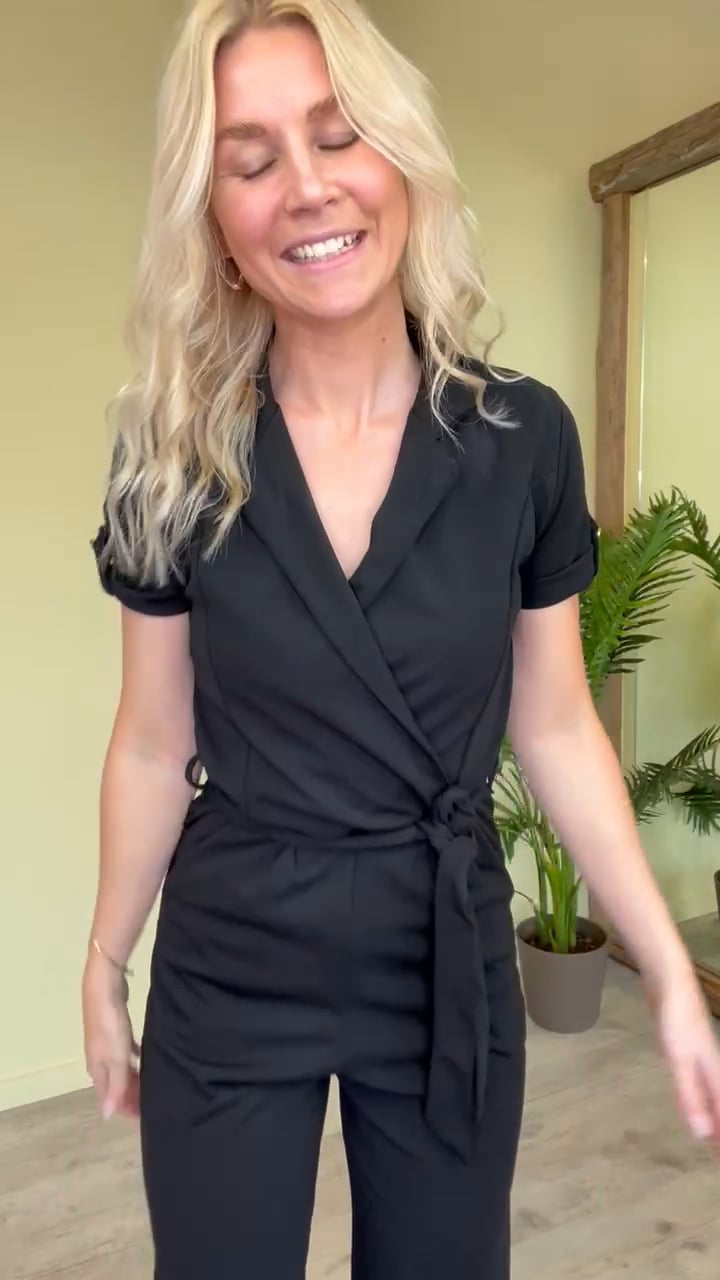 En skøn jumpsuit i kraftig kvalitet fra Sisters Point er landet i to farver. Denne er sort og passer derfor til alt. Den er med aftageligt bindebånd og kan nemt styles til både fest og hverdag. Den findes også i rød.