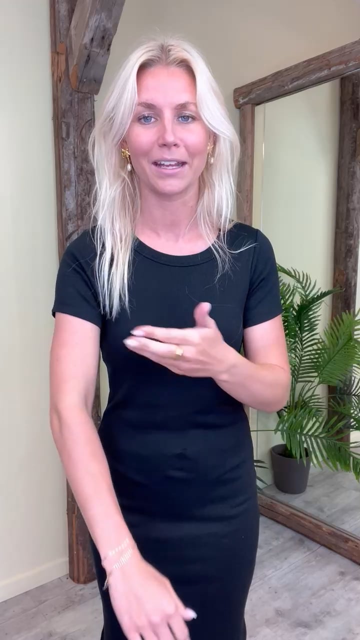 En fin kjole fra Sisters Point er kommet i en klassisk sort rib kvalitet. Den er tætsiddende med en slids i bunden i begge sider. Deruodver er den super som en hverdagskjole og derfor et must til garderoben.
